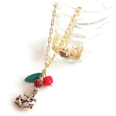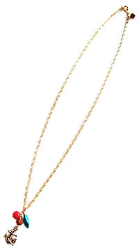 イカリチャームの上にトルコ石とアンティークビーズが付いたチャームネックレスです。トップにボリュームがあるので、胸元を素適に演出してくれますね。