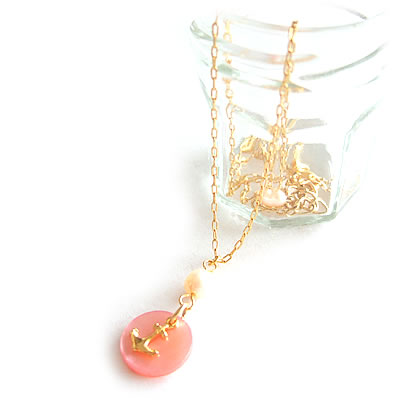 淡水パールビーズとイカリパーツがポイントのキュートな貝ビーズチャームネックレスです。