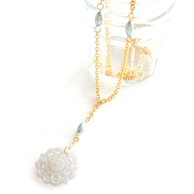 レースの様なお花がとってもキュートなネックレスです。夏の装いをキュートに演出してくれること間違いなしです!