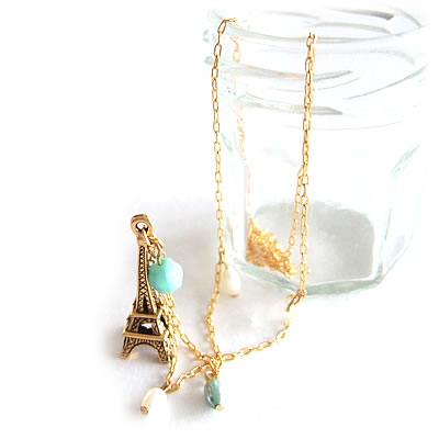 淡水パールの付いたエッフェル塔チャームのネックレスです。たくさんビーズがついていて、とってもキュート!