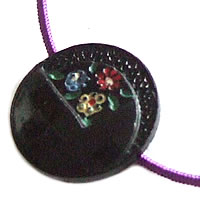 フランスのアンティークボタンが付いたヘアゴムです。彫りこみのあるシックなブラックのボタンに小さなお花が描かれています。