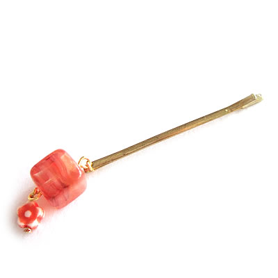 フランスのアンティークビーズが付いたヘアピンです。アメチャンの様なチャームがキュート!