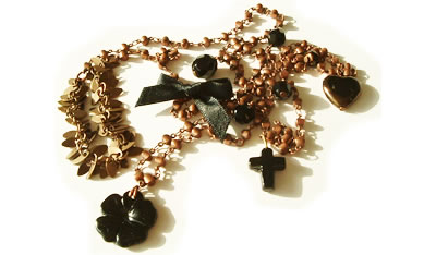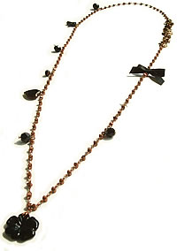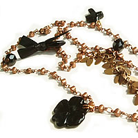 フランス女優、モデルが通うマレ界隈にある人気セレクトショップ「olga」のロングネックレスです。キレイなブロンズチェーンに、たくさんチャームや、ビーズがついています。センターの位置が特に決まっていないので、自分好みにつけれます。長さがあるので、2連にしてもステキです。box付なので、プレゼントにもオススメです。