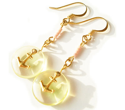 ガラスビーズの上にイカリのパーツがゆれるか夏らしいピアスです。アクセントに、ピンクのフランスプチビーズをつなげてみました。下写真のネックレスとペアでつけてるとカワイサ倍増です!