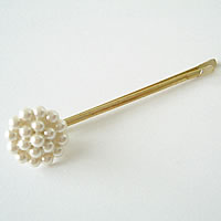 フランスアンティークボタンでフレンチヘアピンを作りました。パール粒のようなボタンがかわいいです。