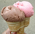 チョコとストロベリーのWアイスゲット!上のパラソルのテーブルで
