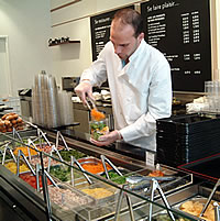 カップのサイズをチョイスして、ムッシュに、自分の好きなサラダやフルーツを指差して、入れてもらいます。