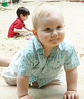 ↓ 砂場で出会ったパリっ子ちゃん。後姿の2人なんだか勇ましい感じだ