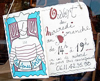 営業時間を知らせる看板が手作りです。カワイイ →