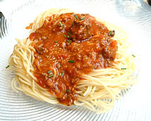 まずパスタを口にすると。。。パスタ茹ですぎで、麺がプツンプツン切れる。