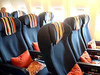 搭乗時刻になりました。雨がパラついていてなんだか寂しい気持ちに。飛行機に乗り込む瞬間は、いつもこんな気持ちになります。グスン。が、このシートに座るとさっきまでの寂しい気持ちは吹き飛び帰るのが楽しみになってきました。エルフラ号って