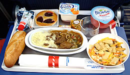 機内食は、こんな感じです。もちろんエコノミー 食です。^−^;