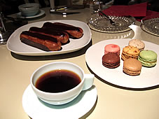 どのお料理もホントに美味しかったなぁ。。。食後のデザートは、おみやで持っていったメゾンドゥショコラのエクレールと、マヤさんオススメのマカロン。