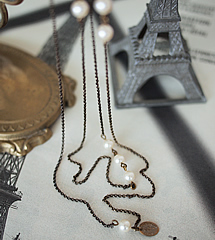 パールビーズ(中玉11個)のシンプルな組み合わせがとても素敵な【NADINE DELEPINE】のロングネックレスです。