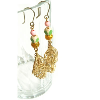 フランス女優、モデルが通うマレ界隈にある人気セレクトショップ「olga」の葉っぱモチーフのピアスです。4枚のゴールドの葉っぱが揺れてとてもステキなピアスです。ミニポーチ付なので、プレゼントにもオススメです。