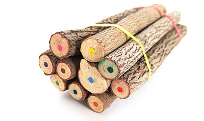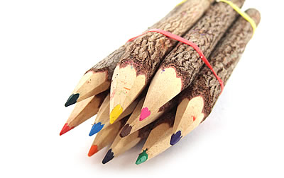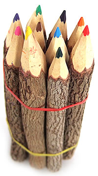 木の枝をそのまま利用した色鉛筆の10色セットです。削ってしまうのがもったいないかも!?