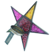 ☆型ステンドグラスのキャンドルホルダーです。4色のステンドグラスがステキです。特別な日に、キャンドルを灯して演出してみてはいかがですか。